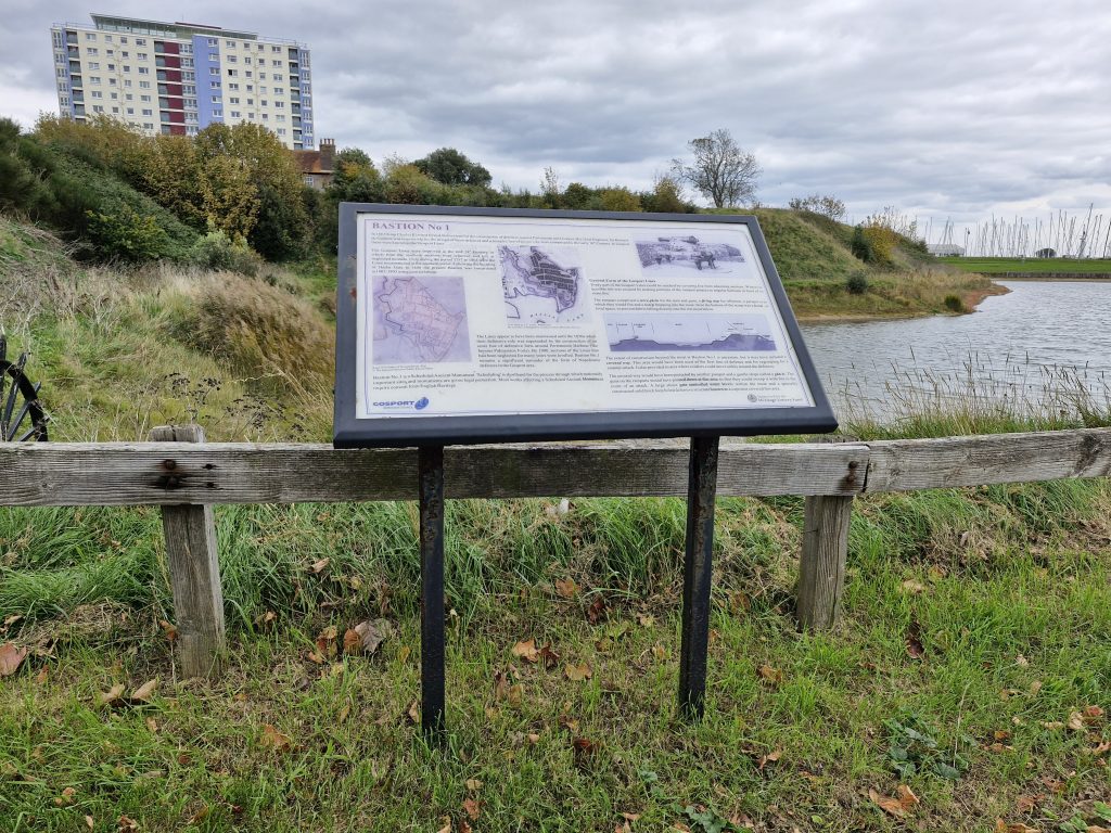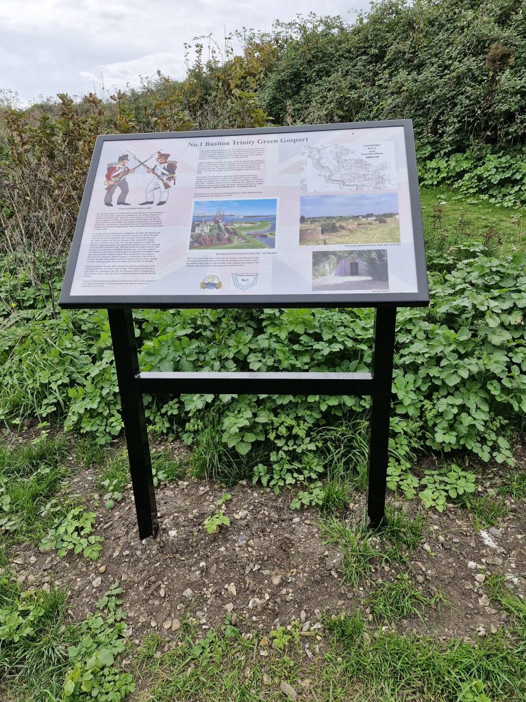 The Friends of the Bastion are delighted with the recent installation of a new interpretation board. You may have seen an interpretation board on Haslar Road – it’s still there and worth a look. The new interpretation board is INSIDE the Bastion, to encourage you to visit.